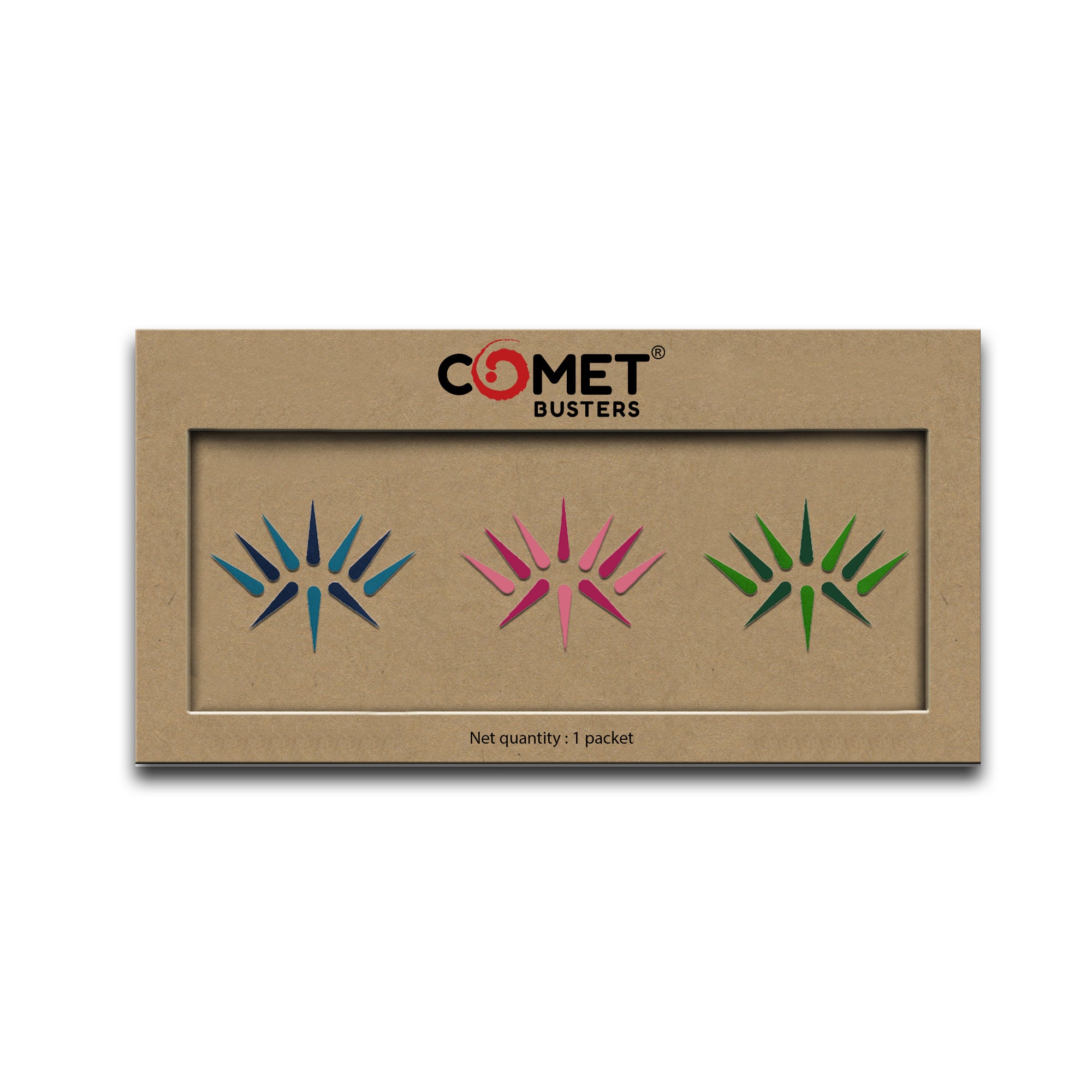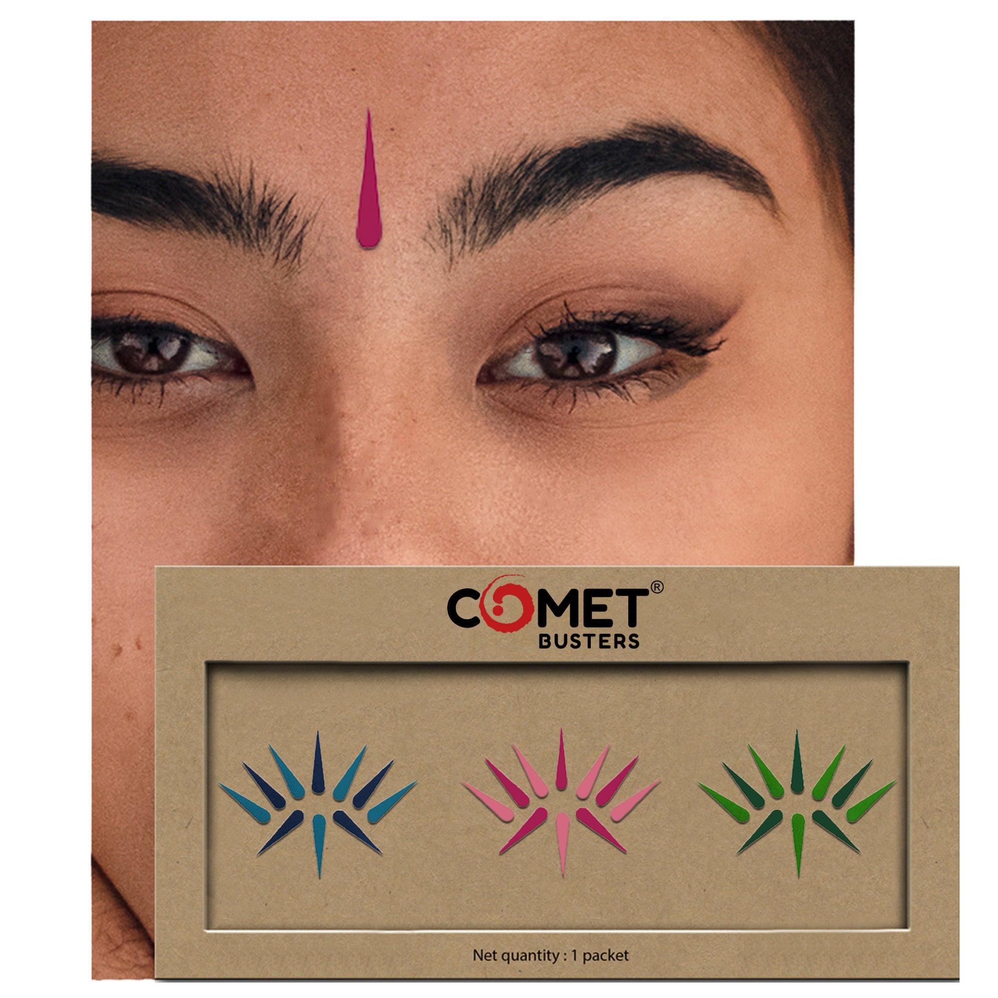 Comet Busters® Blue, Pink, Green, Multicolor Tilak – Velvet – Handcrafted, Reusable & Skin-Friendly Bindis for Casual Wear (13mm) – Forehead Bindi Stickers for Women & Girls – BIN1578