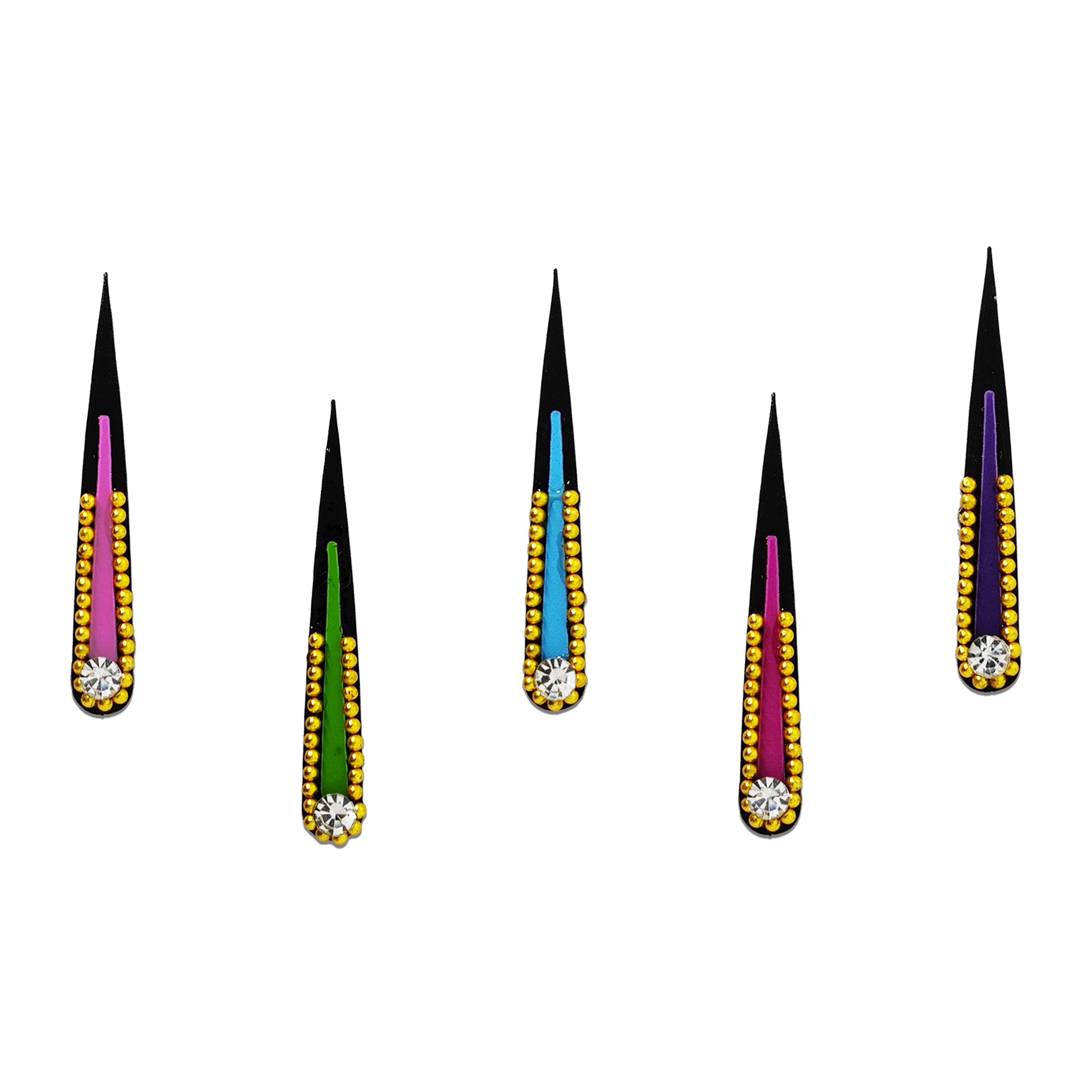 • Multicolor Bindis: Vibrant options for a lively look.