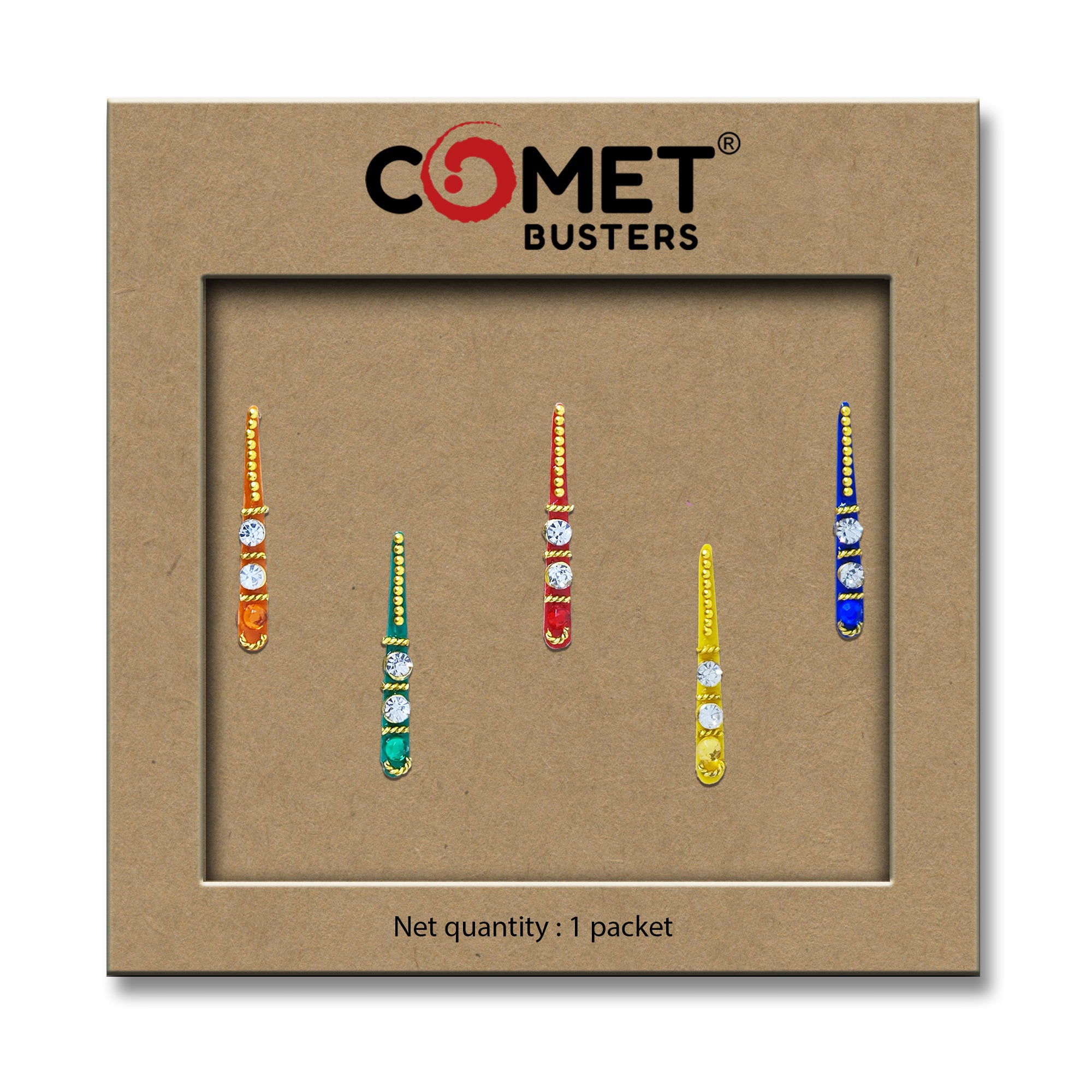 Comet Busters® Multicolor Tilak – Diamond, Shiny Beads, PVC – Handcrafted, Reusable & Skin-Friendly Bindis for Bridal Wear (20mm) – Forehead Bindi Stickers for Women & Girls – BIN798