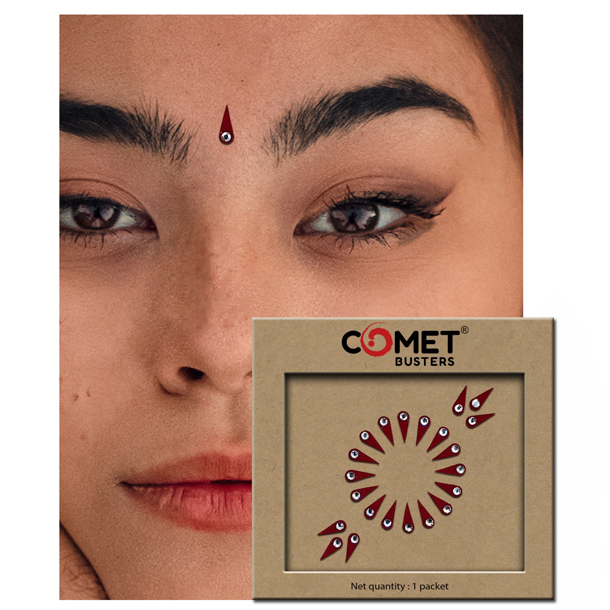 Comet Busters® Maroon Tilak – Velvet, Diamond – Handcrafted, Reusable & Skin-Friendly Bindis for Casual Wear (7mm) – Forehead Bindi Stickers for Women & Girls – BIN2363