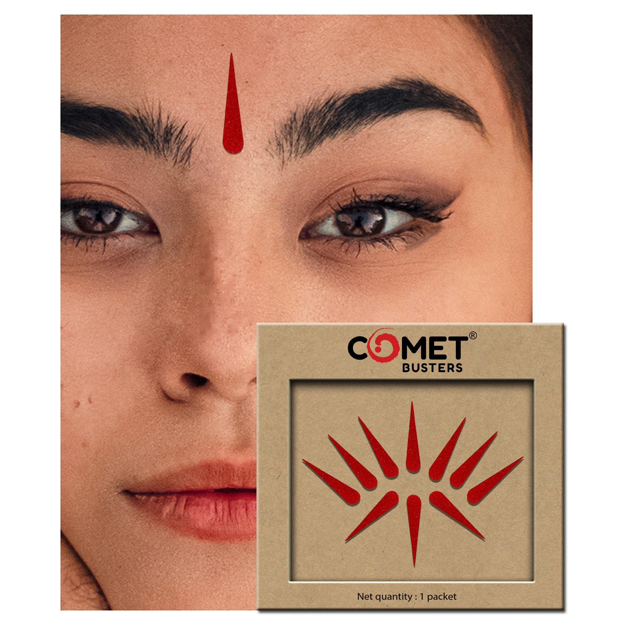 Comet Busters® Red Tilak – Velvet – Handcrafted, Reusable & Skin-Friendly Bindis for Casual Wear (14mm) – Forehead Bindi Stickers for Women & Girls – BIN1497