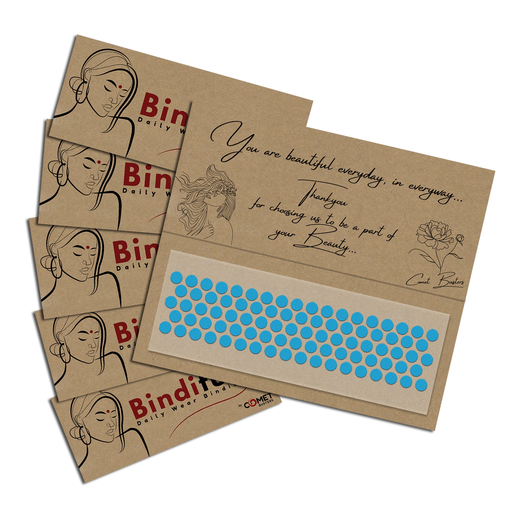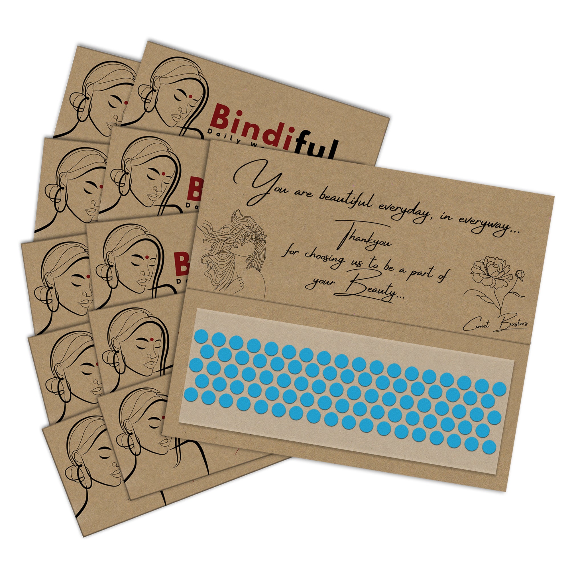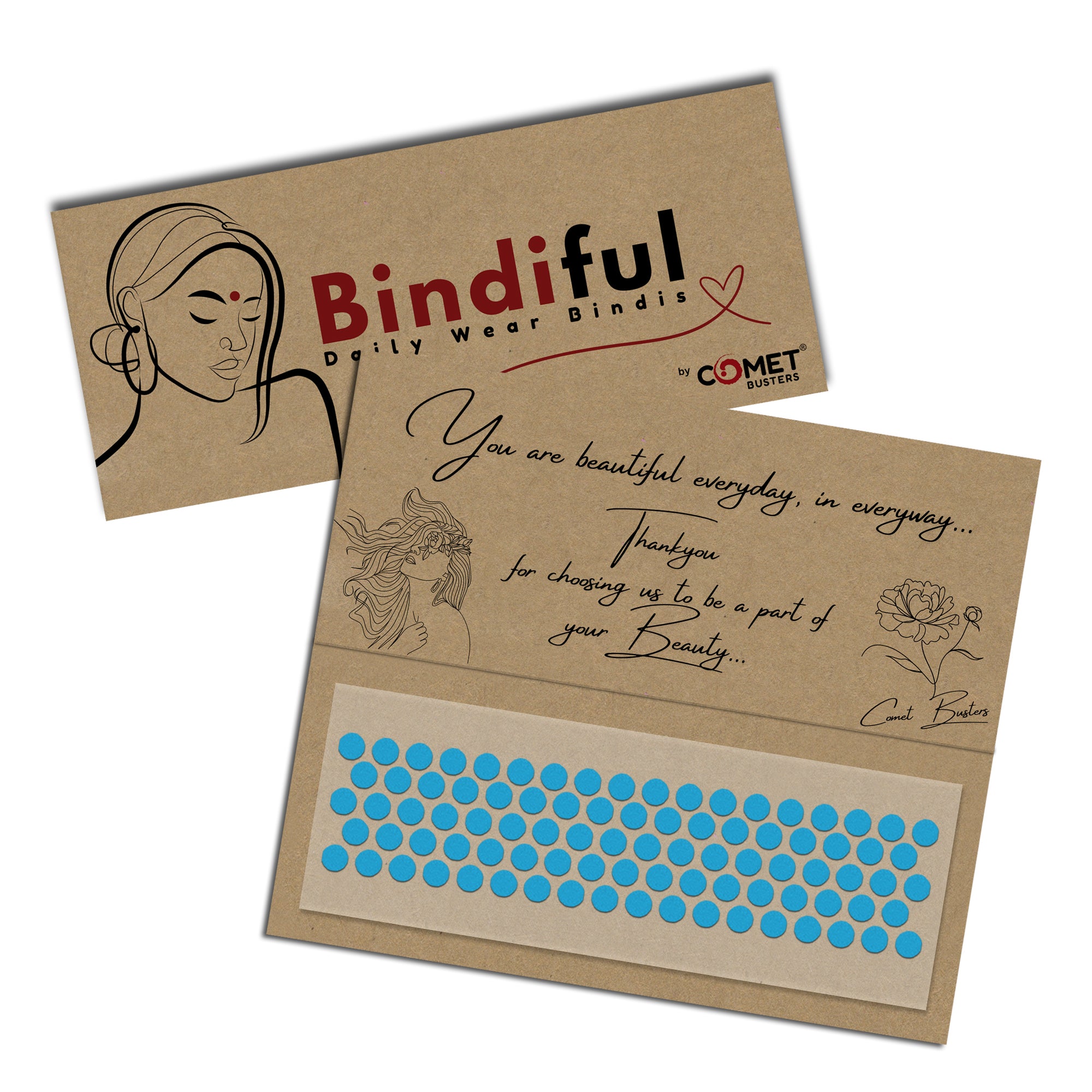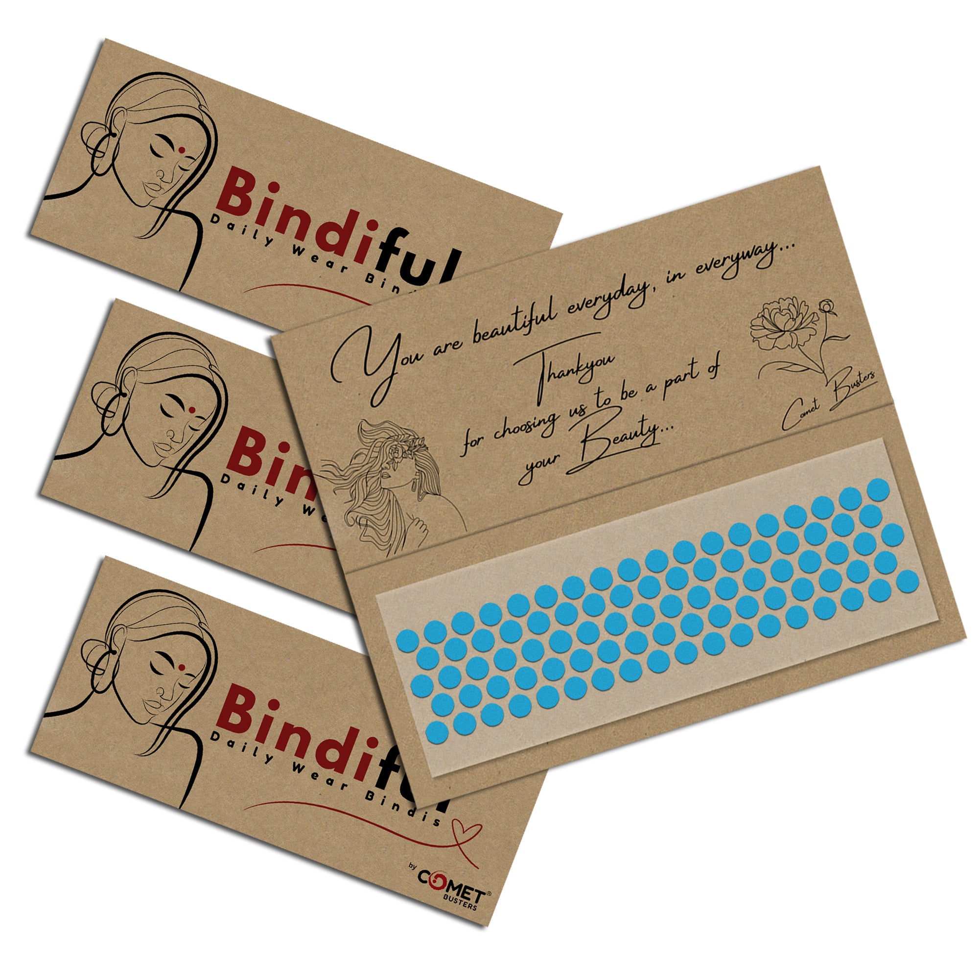 • Bindiful Dailywear Bindis by Comet Busters : We have designed our bindis tapping into centuries of tradition and with attention to detail. Our online bindi store has a beautiful collection of Single, Black color, Maroon Color and multi color bindis and comprises a range of masterfully created minimalist bindi designs. All bindi designs are handcrafted with care and attempt to embody the elegance and grace of a woman.