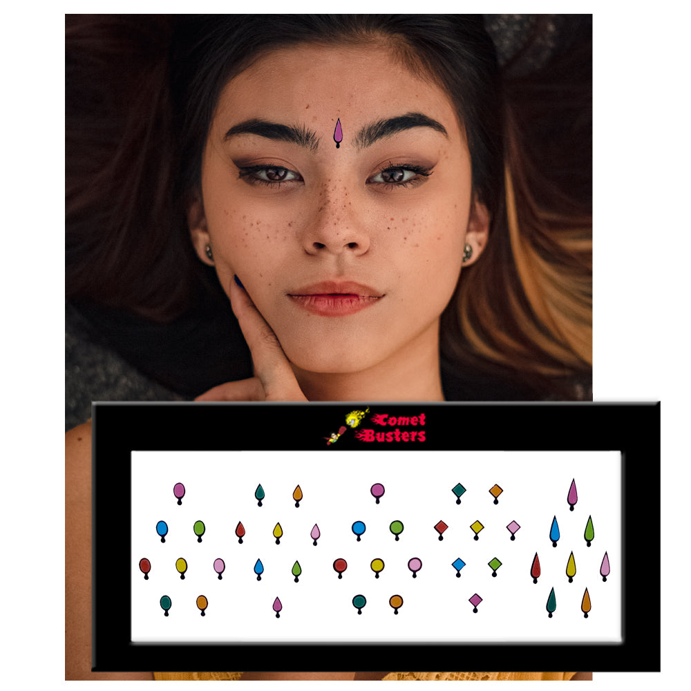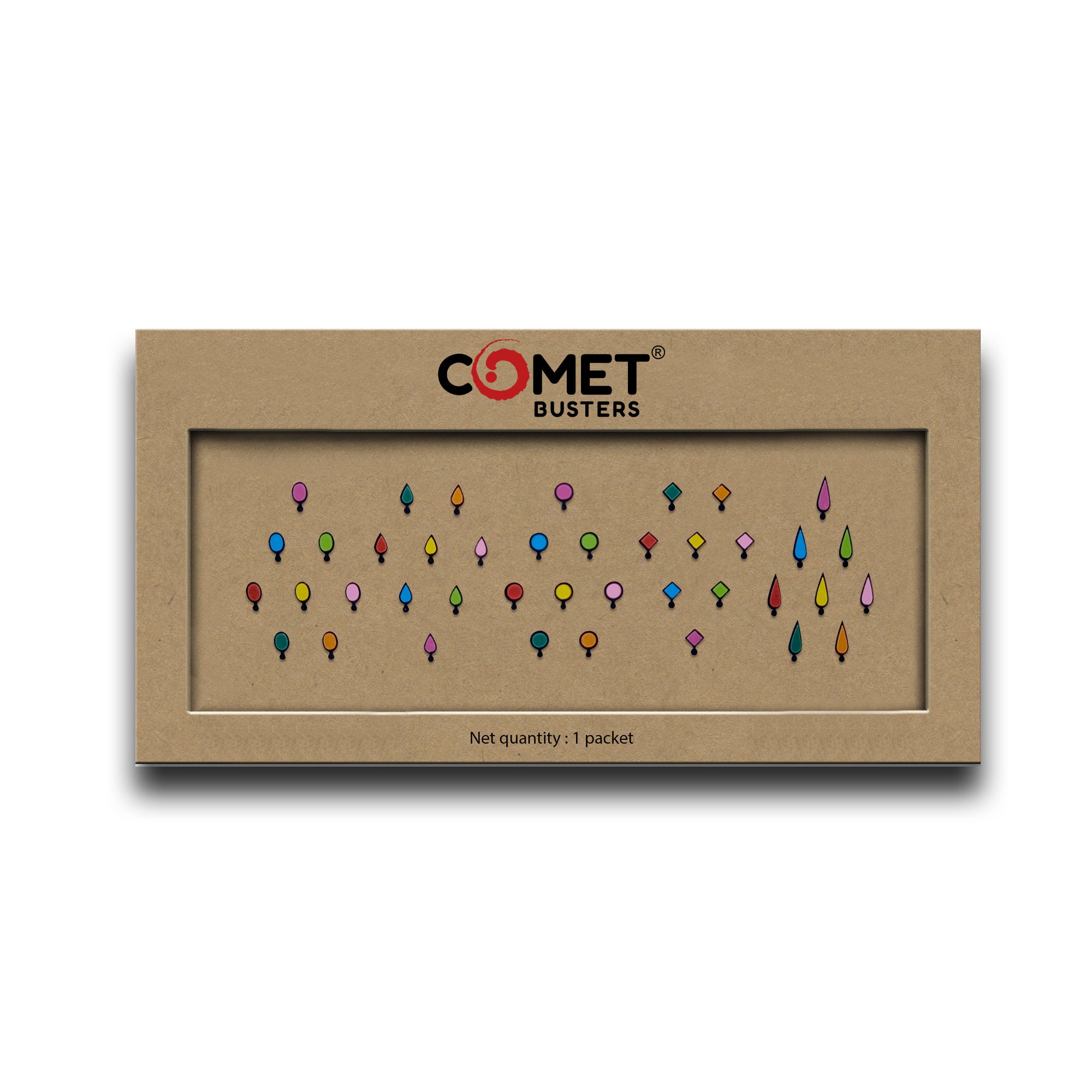 Comet Busters® Multicolor Oval, Tear Drop, Round, Square – PVC – Handcrafted, Reusable & Skin-Friendly Bindis for Casual Wear (6, 7, 8, 9, 10mm) – Forehead Bindi Stickers for Women & Girls – BIN1849