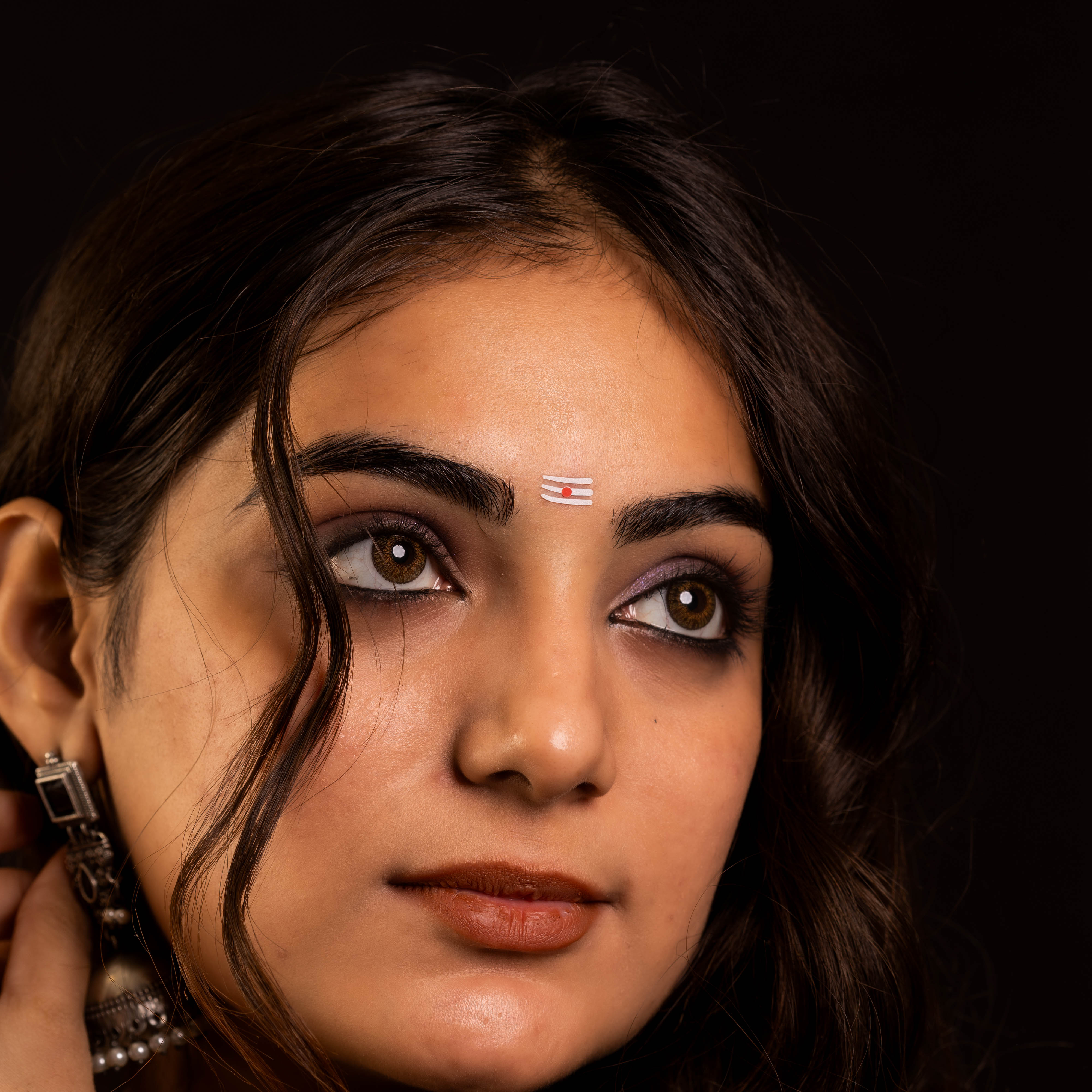 • To apply, gently remove the bindi from its backing and place it between the eyebrows.