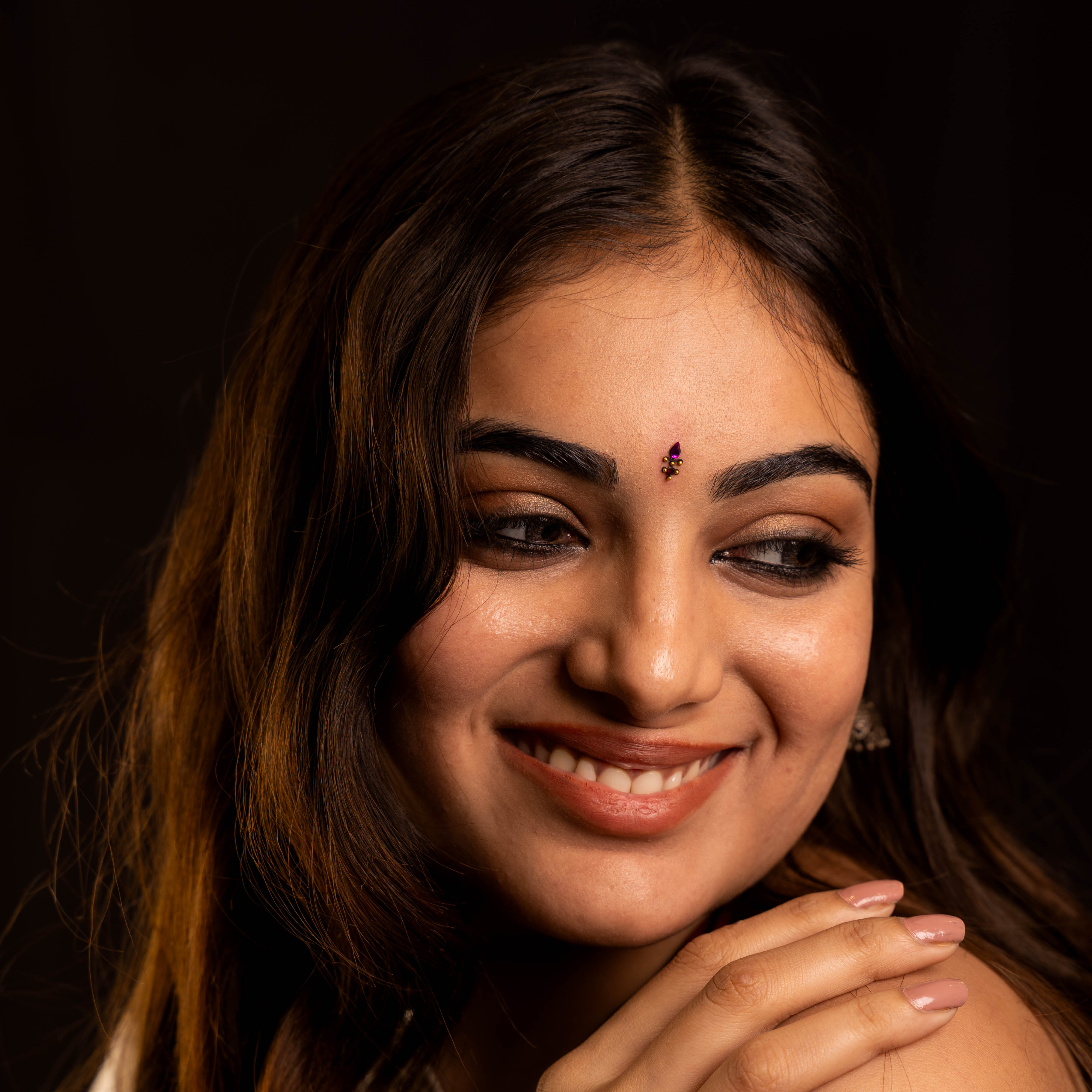 • To apply, gently remove the bindi from its backing and place it between the eyebrows.