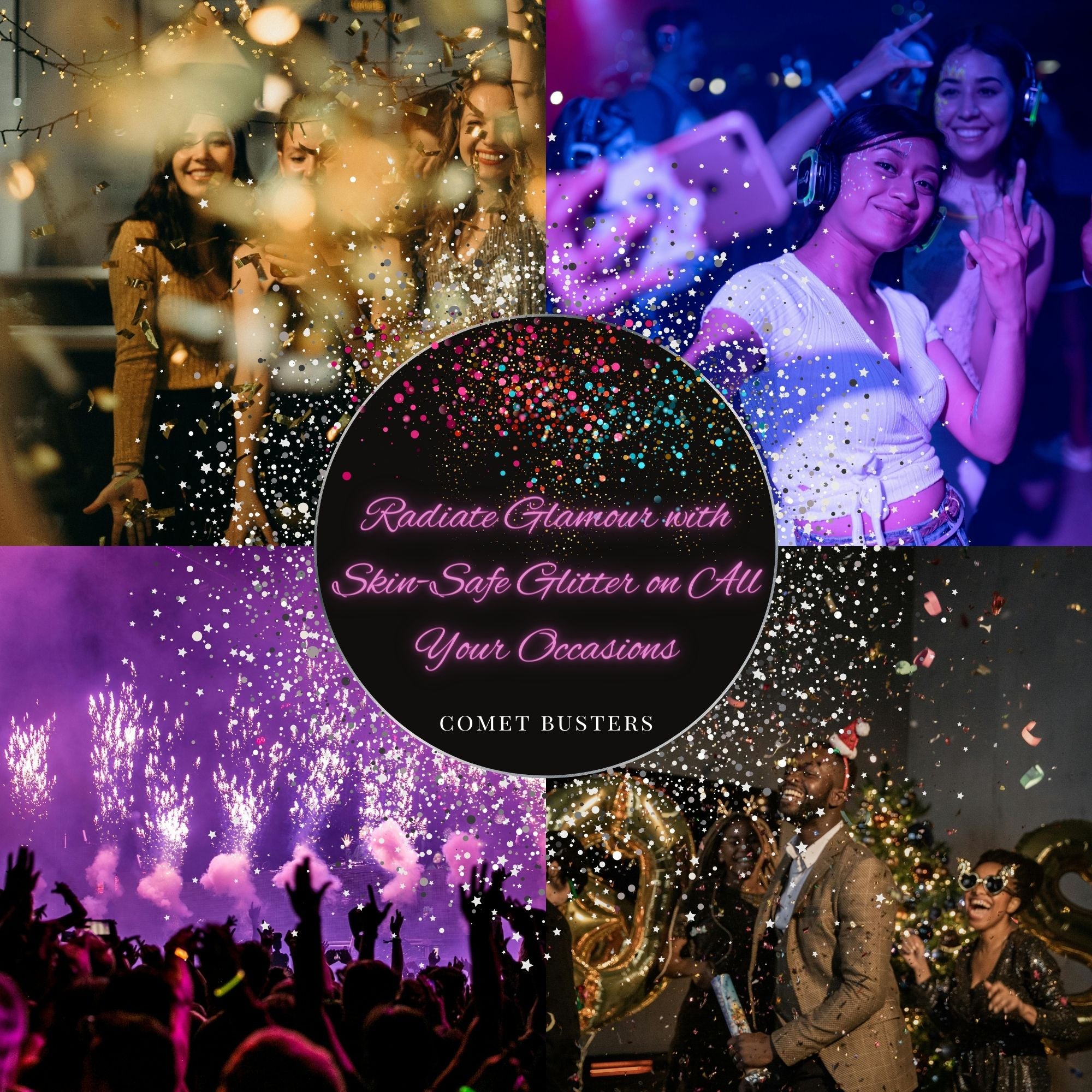 Bold, Eye-Catching Glitter: "Comet Busters Chunky Face and Body Shimmer Glitters" are your go-to for adding bold, sparkling highlights to any look! Adds a radiant, sparkling highlight to your face, body, or hair.